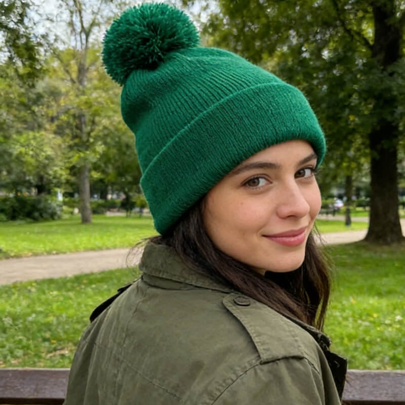 Stylish Custom Bobble Knit Hat Fluffy Pom-Pom Warm Texture Perfect for FallWinter Looks
