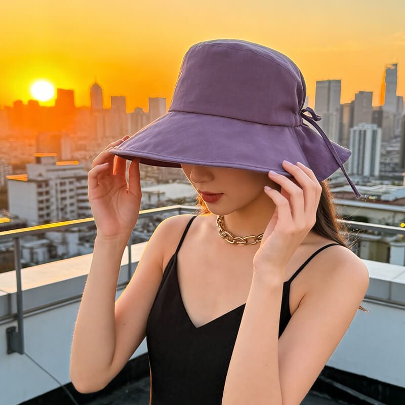 Custom Wide Brim Sun Bucket Hat Bow Design Multiple Colors Ideal for Beach Outdoor Wear