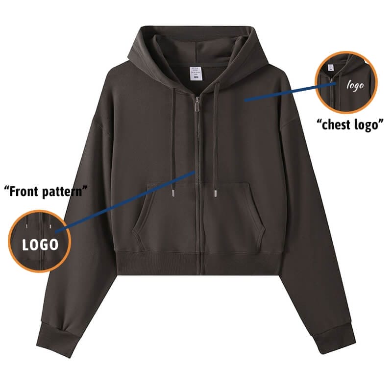 Cropped Full-Zip Hoodie Soft Cozy Fabric Multiple Colors Custom LogoPrint for Personalized Casual Daily Wear