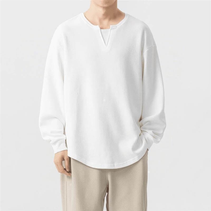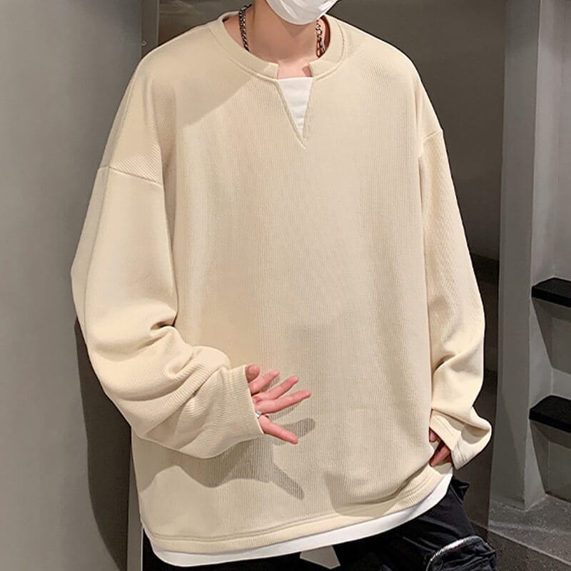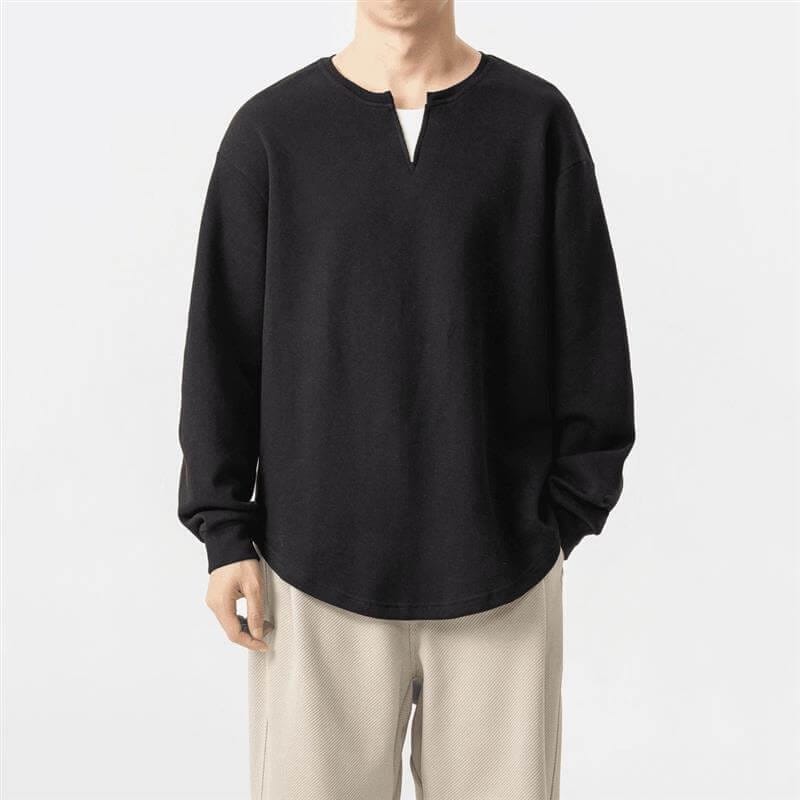 Tiny V-Neck Oversized Long-Sleeve Sweatshirt Soft Cozy Fabric Multiple Colors Custom LogoPrint for Casual Daily & Personalized Wear